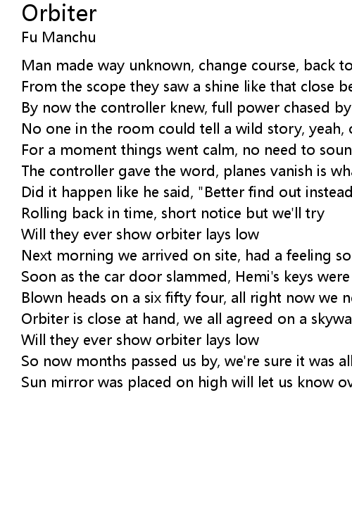 Orbiter is close at hand, we all agreed on a skyward plan |