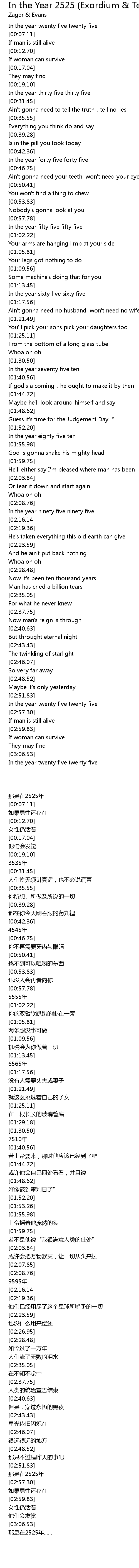| [02:53.97] | In the year twenty five twenty five |