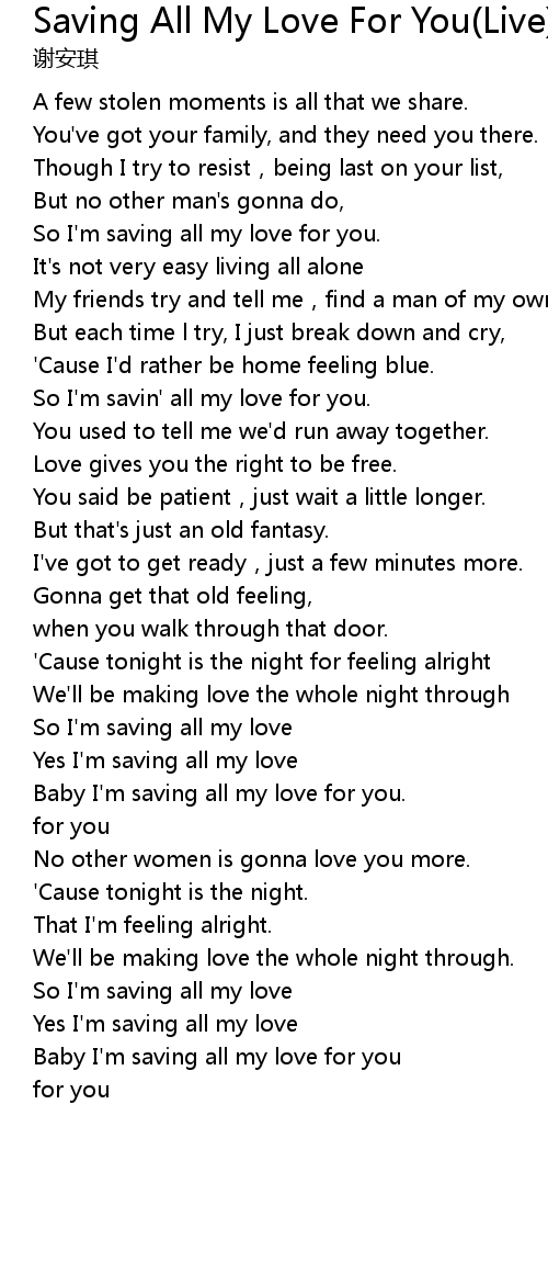 | Yes I' m saving all my love | |