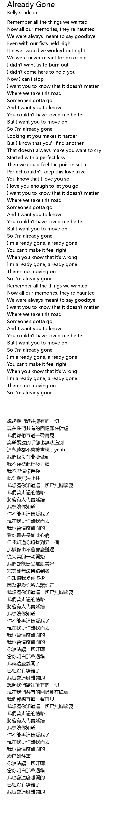 I'm already gone, already gone |