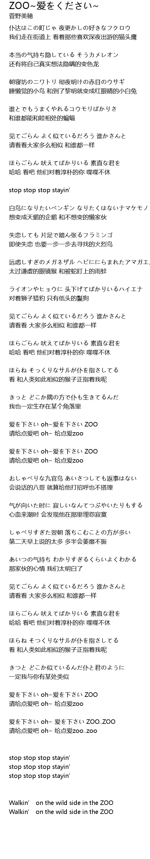 | 爱を下さい oh~ 爱を下さい ZOO..ZOO | |