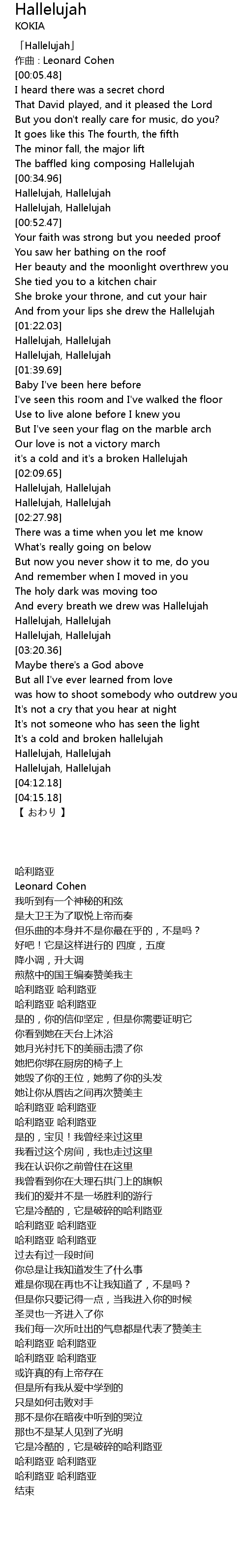 | [00:01.48] | 「Hallelujah」 |