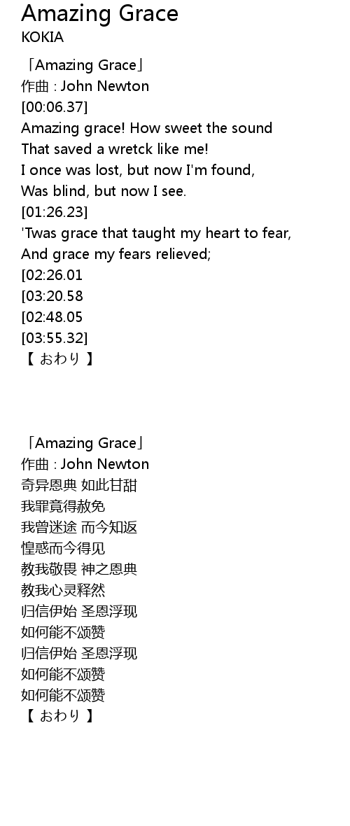 | [00:08.37] | Amazing grace! How sweet the sound |