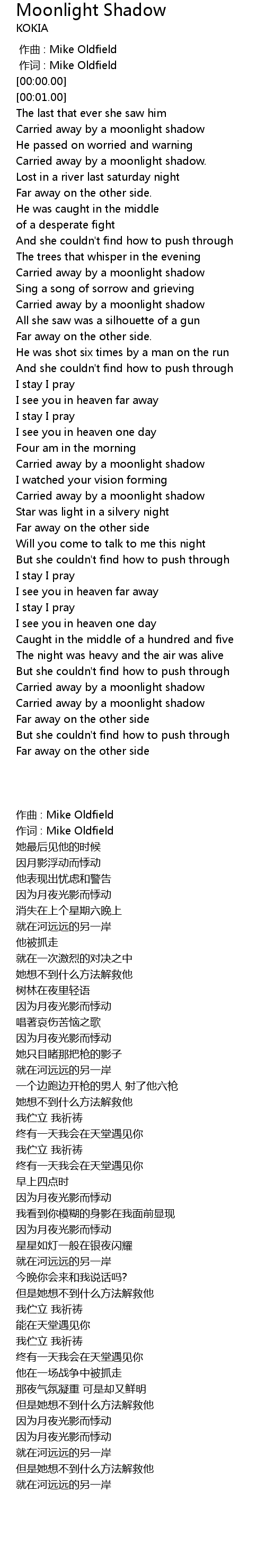 | [00:33.700] | Carried away by a moonlight shadow. |