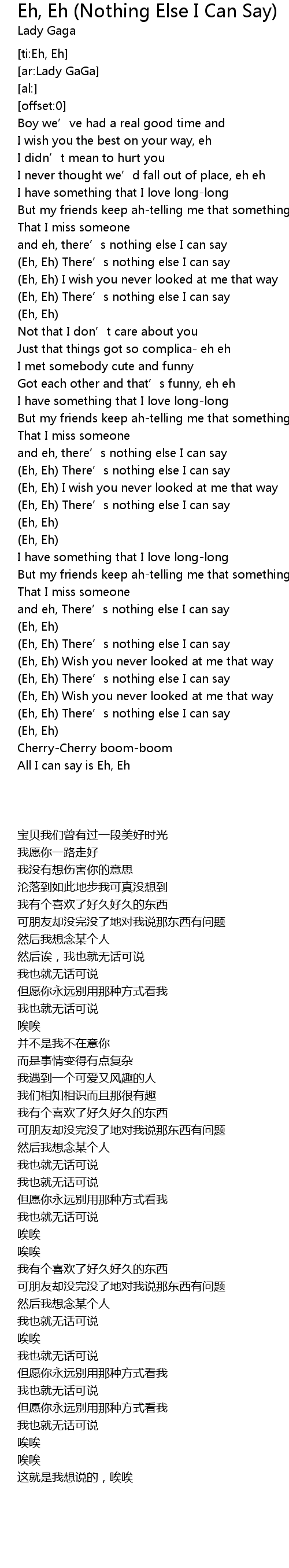 | [02:15.01] | Eh, Eh There' s nothing else I can say |