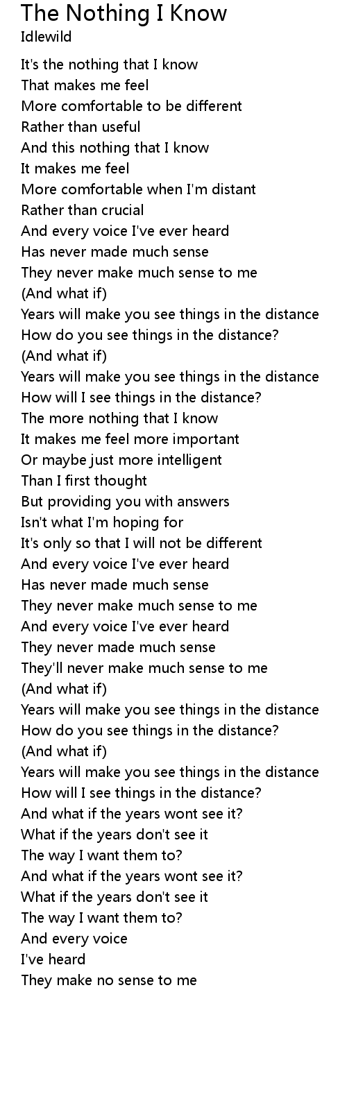 The more nothing that I know |