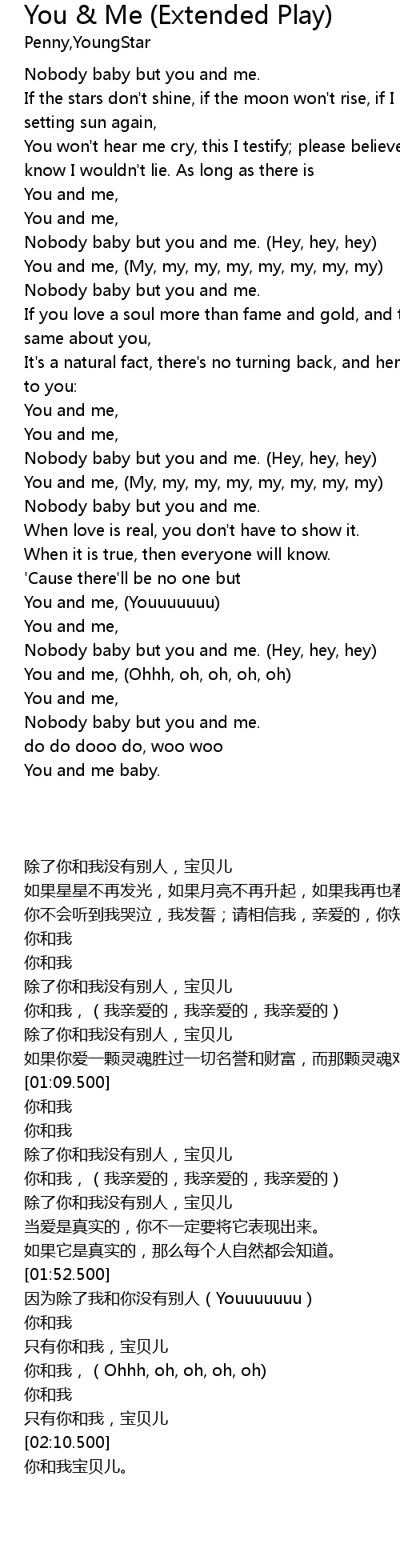 | [00:49.500] | Nobody baby but you and me. (Hey, hey, hey) |