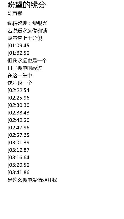 | [00:46.20][02:22.54] | 缘份永远要避开我 |