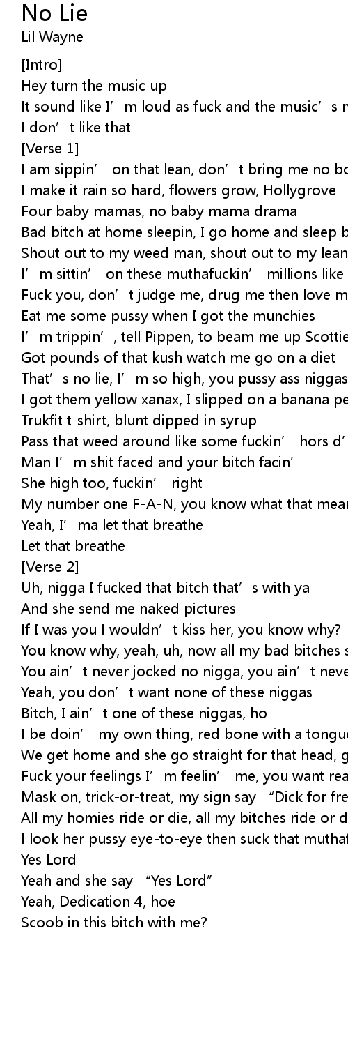 | I am sippin’ on that lean, don’t bring me no bottles hoe | |