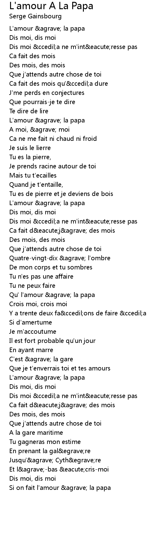 L'amour A La Papa Lyrics