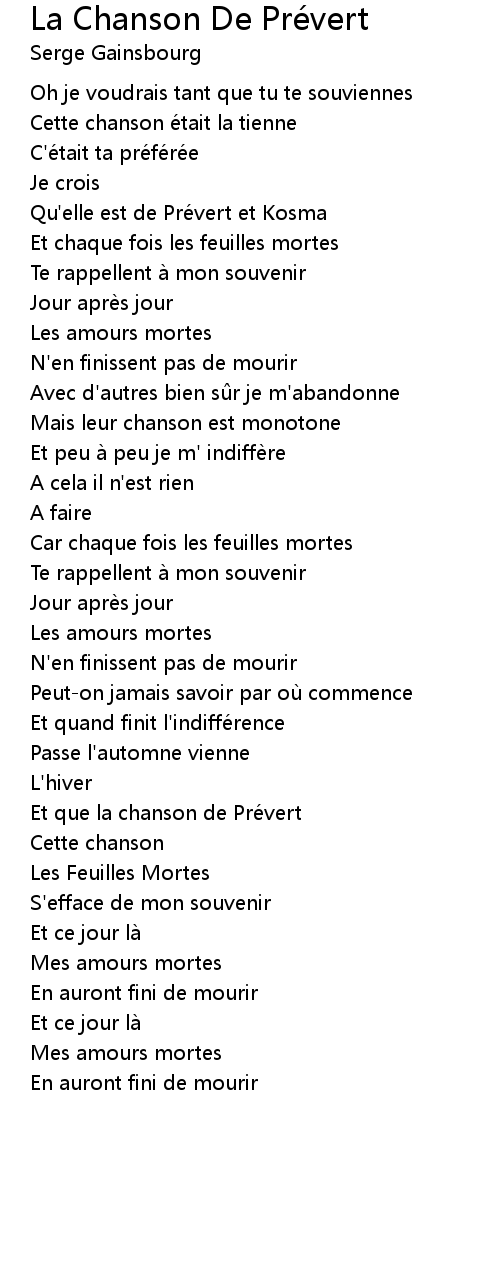| Et que la chanson de Prévert | |