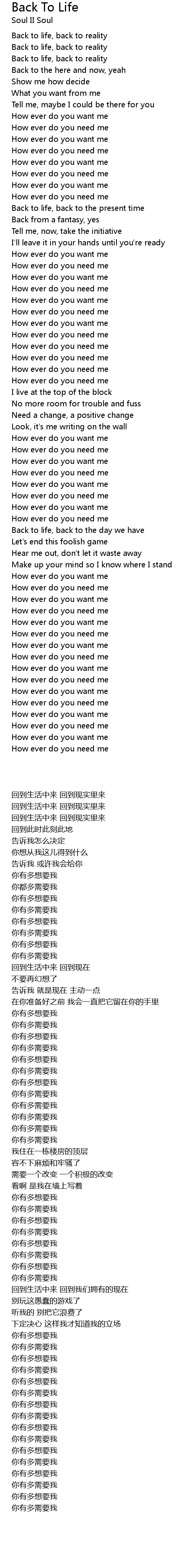 Back to life, back to the day we have |