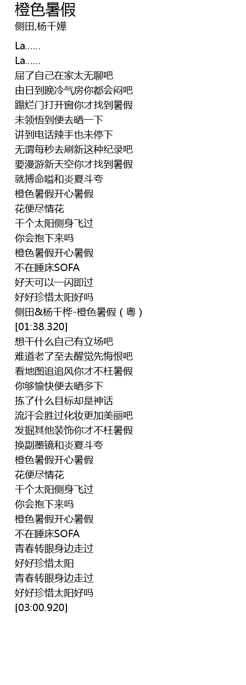 | [01:31.350] | 侧田&杨千桦-橙色暑假(粤) |