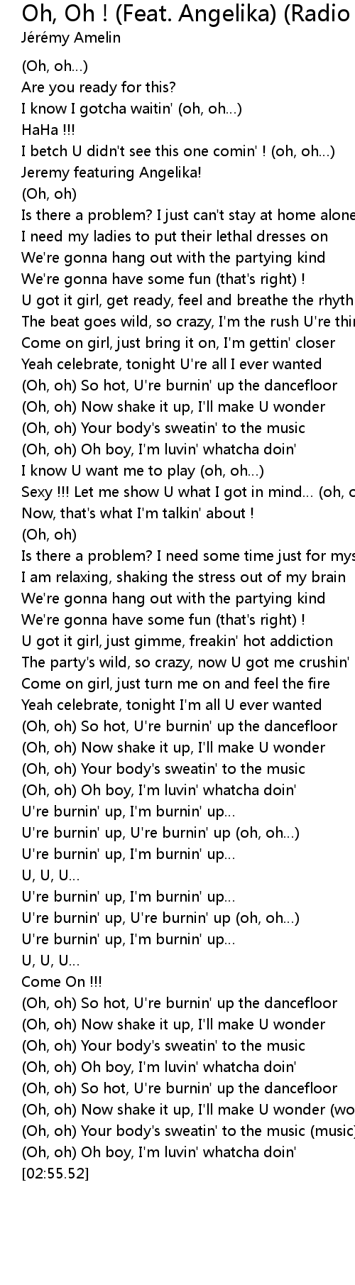 | [02:24.92] | (Oh, oh) So hot, U're burnin' up the dancefloor |