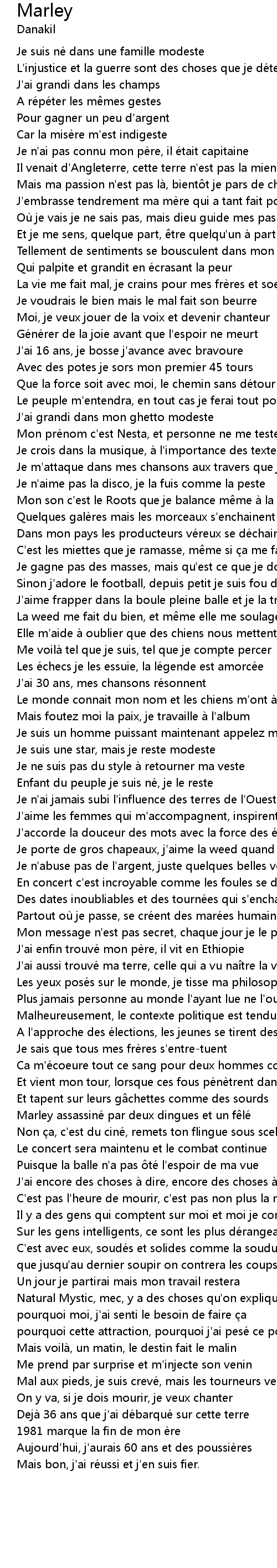 | Song | Marley |