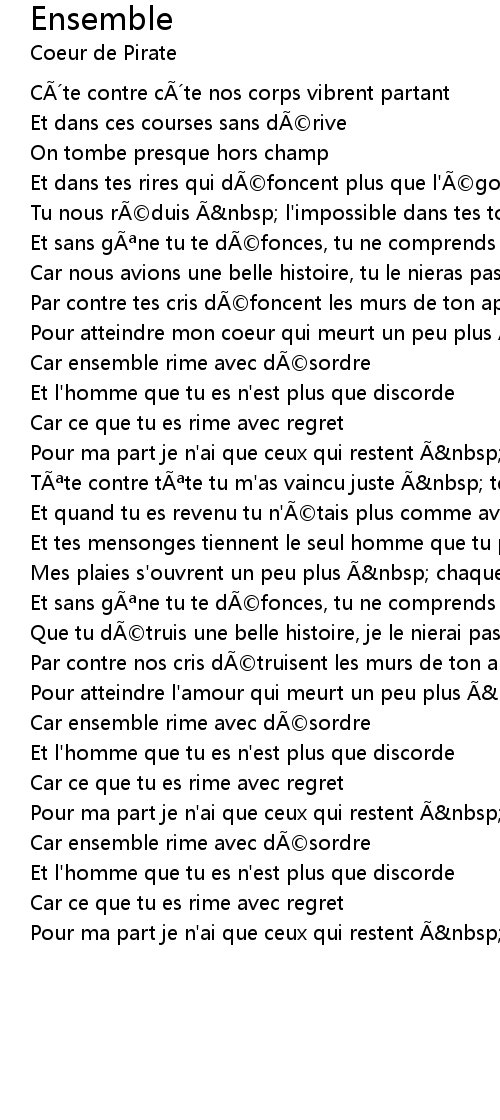 | C te contre c te nos corps vibrent partant | |