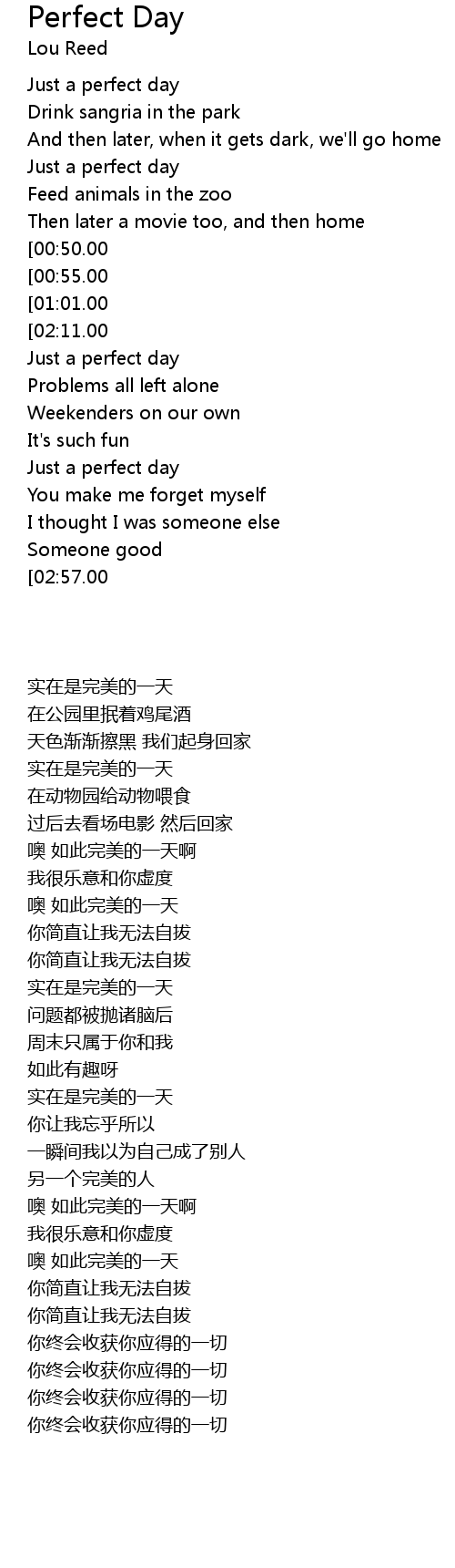 [01:57.00][00:50.00] Oh it's such a perfect day
