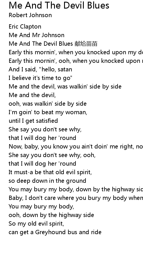 | [00:03.46] | Me And The Devil Blues 献给苗苗 |