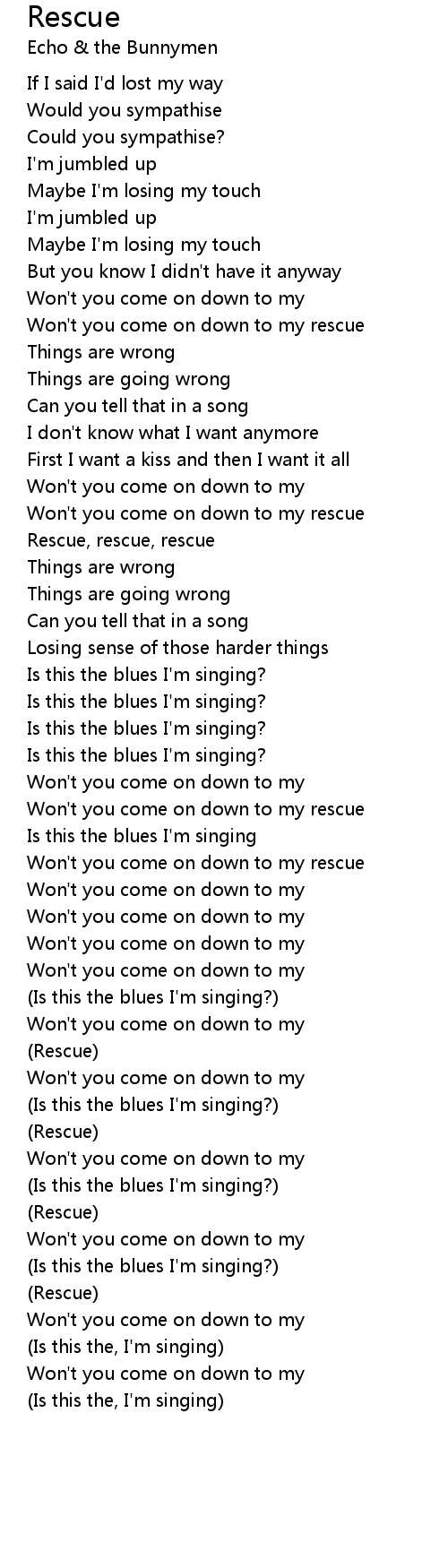 Won't you come on down to my rescue |