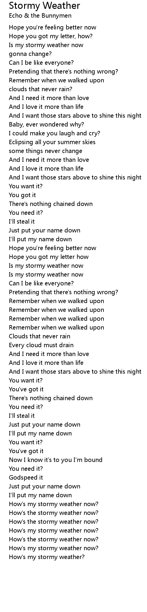 How's my stormy weather now? |