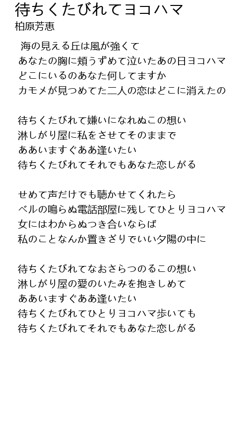 待ちくたびれてそれでもあなた恋しがる |