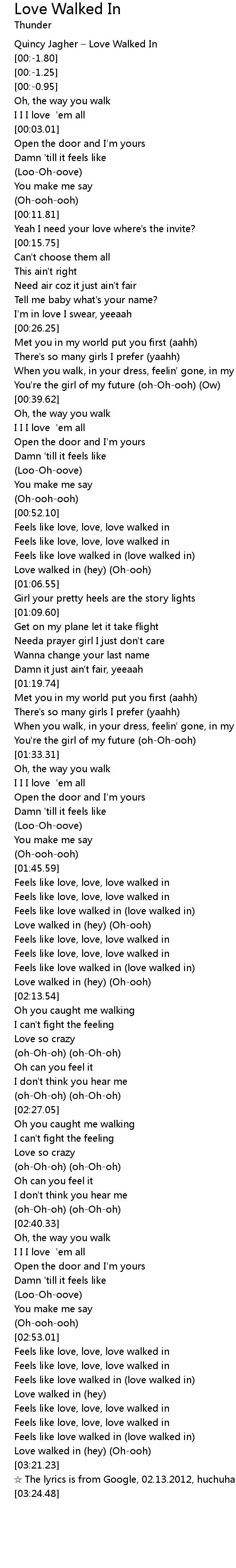 | [03:00.15] | Feels like love walked in (love walked in) |