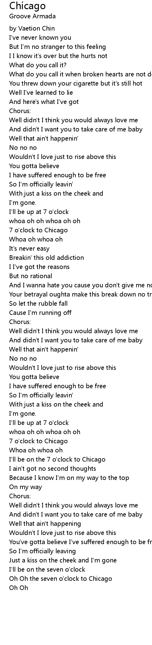 Oh Oh the seven o'clock to Chicago |