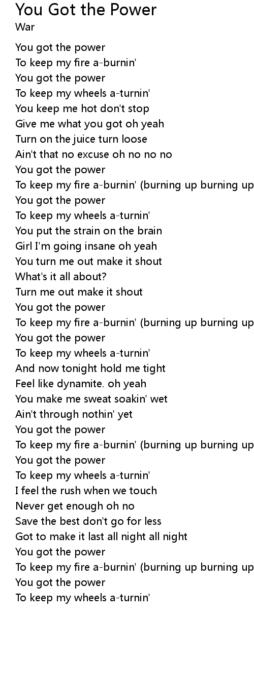 To keep my fire a-burnin' (burning up burning up burning up burning up) |