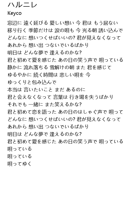 | 君と初めて恋を語った あの日のはしゃぐ声で 唄っている | |