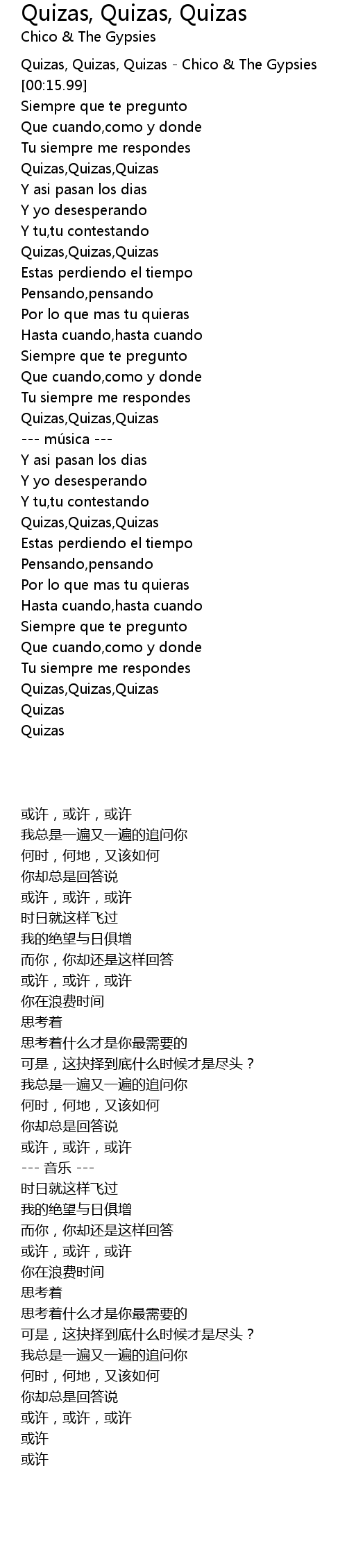 | [00:00.00] | Quizas, Quizas, Quizas - Chico & The Gypsies |