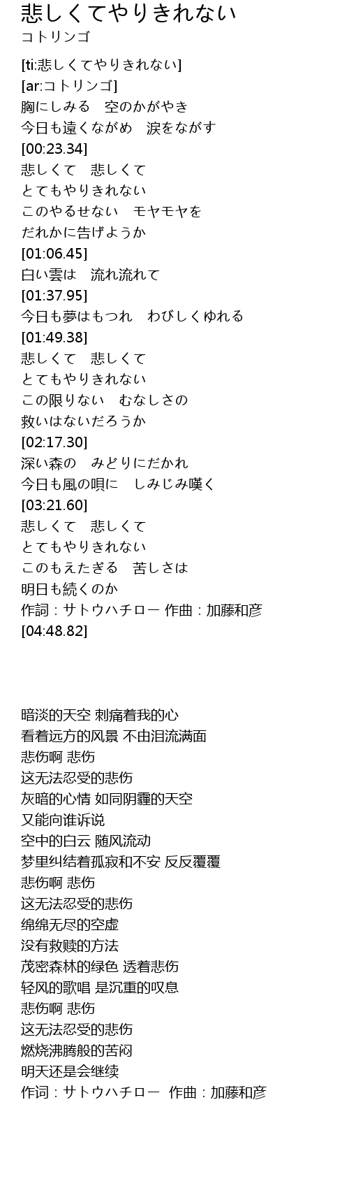 | [03:41.22] | 悲しくて 悲しくて |