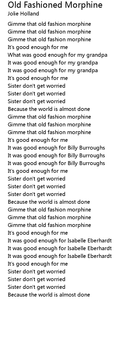 Gimme that old fashion morphine |