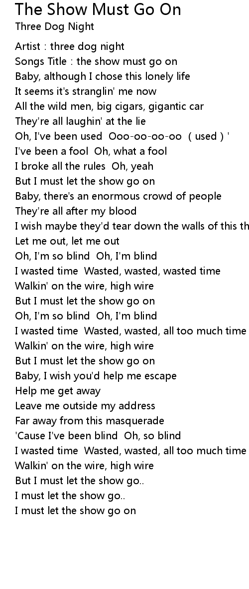 | Songs Title: the show must go on | |