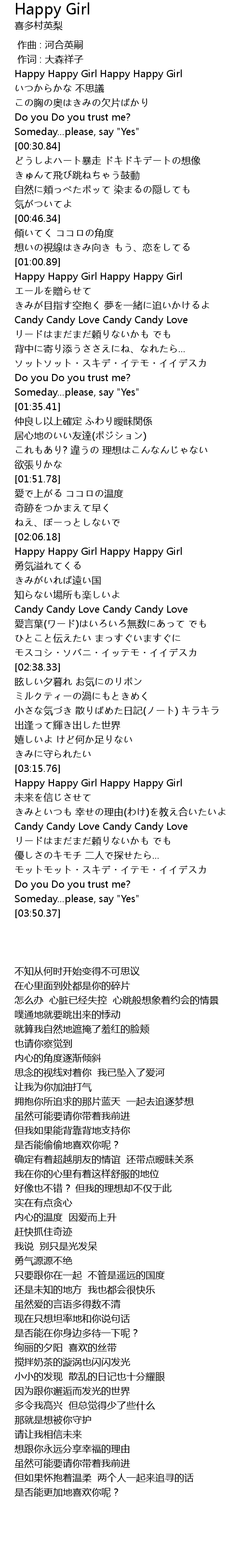 | [00:14.35] | Happy Happy Girl Happy Happy Girl |