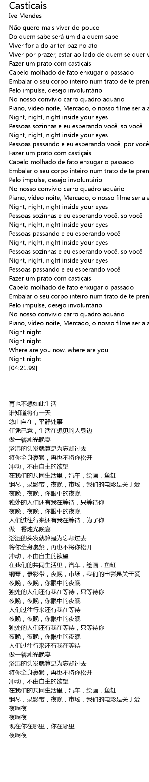 | [00:36.15] | Fazer um prato com casti ais |