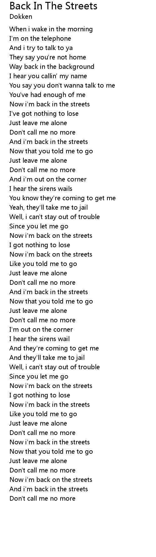 | Now i'm back on the streets | |