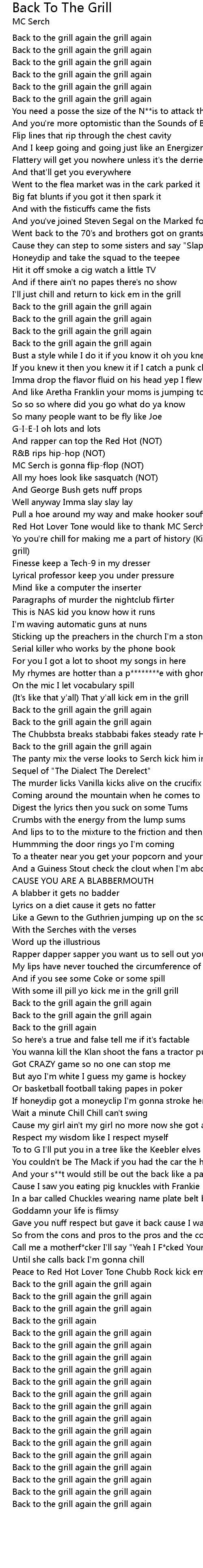 Back to the grill again the grill again |
