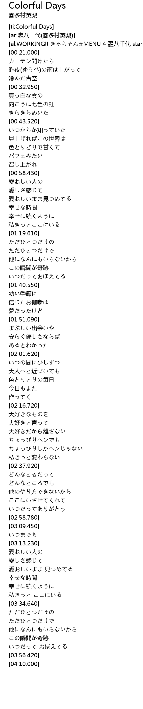 | [02:07.520] | 色とりどりの毎日 |