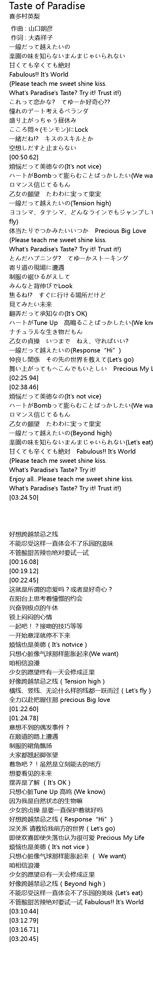 | [03:20.45] | What's Paradise's Taste? Try it! Trust it!) |