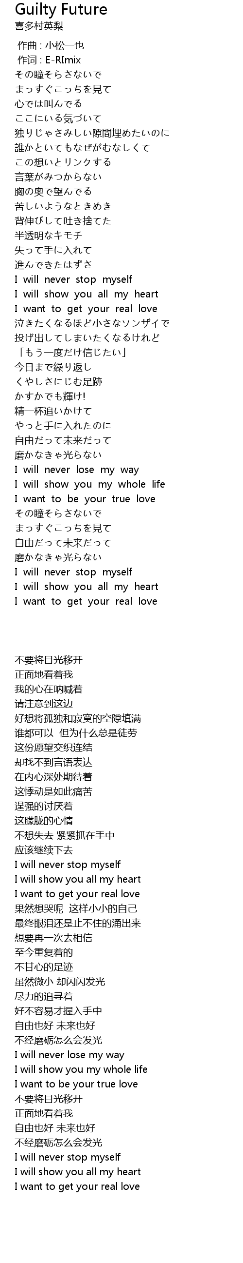 | [01:15.08] | I will show you all my heart |