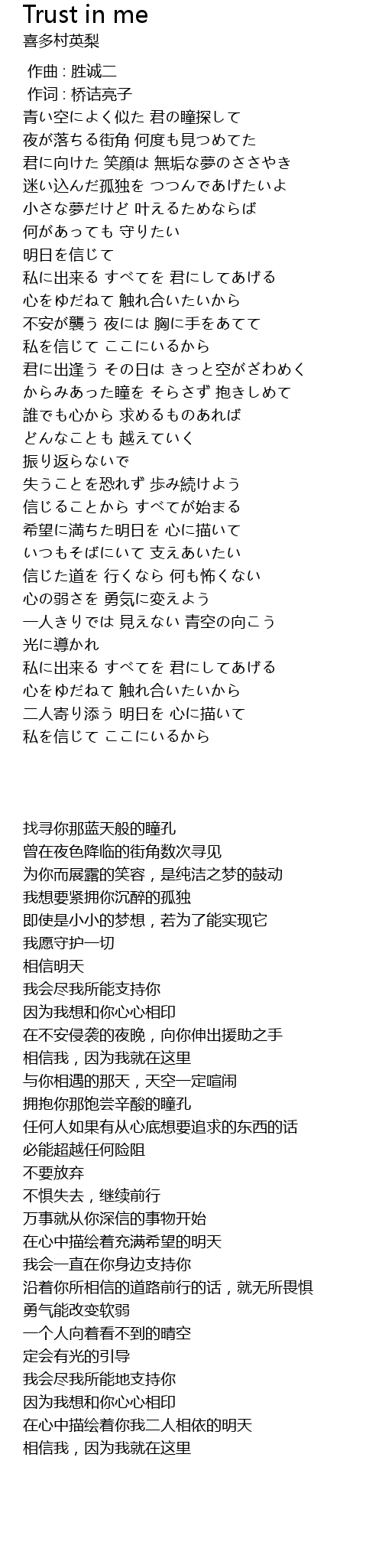 | [03:27.39] | 私を信じて ここにいるから |