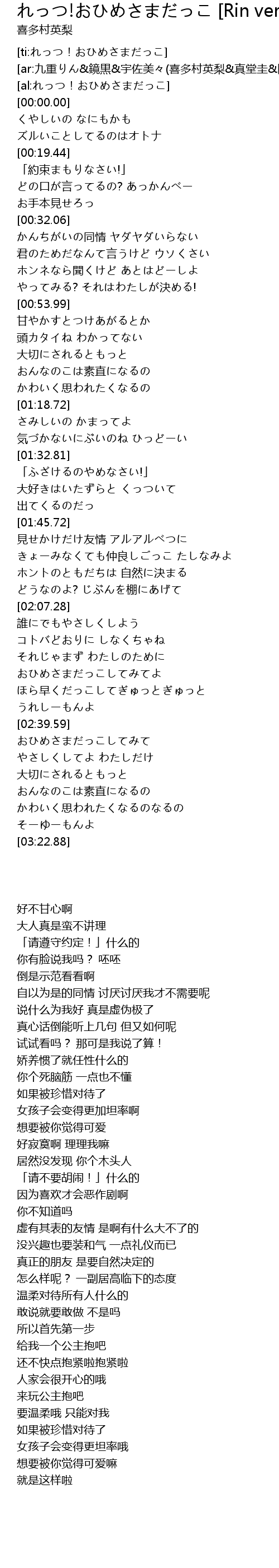 | [02:22.29] | おひめさまだっこしてみてよ |