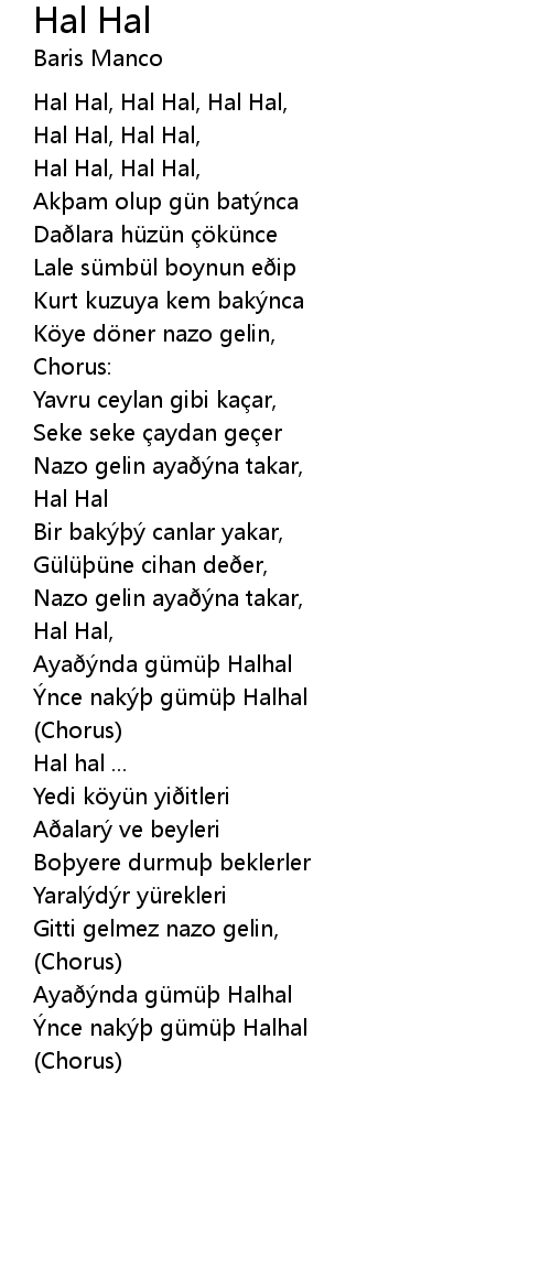 | Hal Hal, Hal Hal, Hal Hal, | |