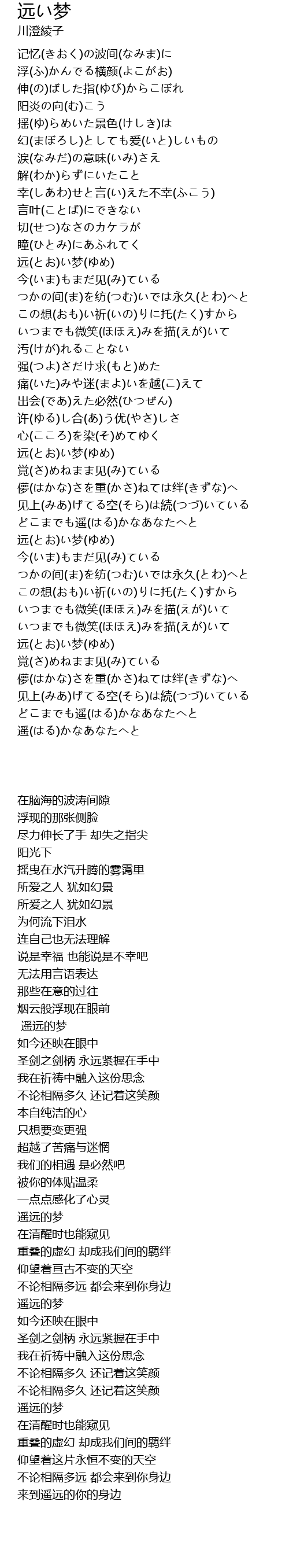 | [03:15.240] | 远(とお)い梦(ゆめ) |