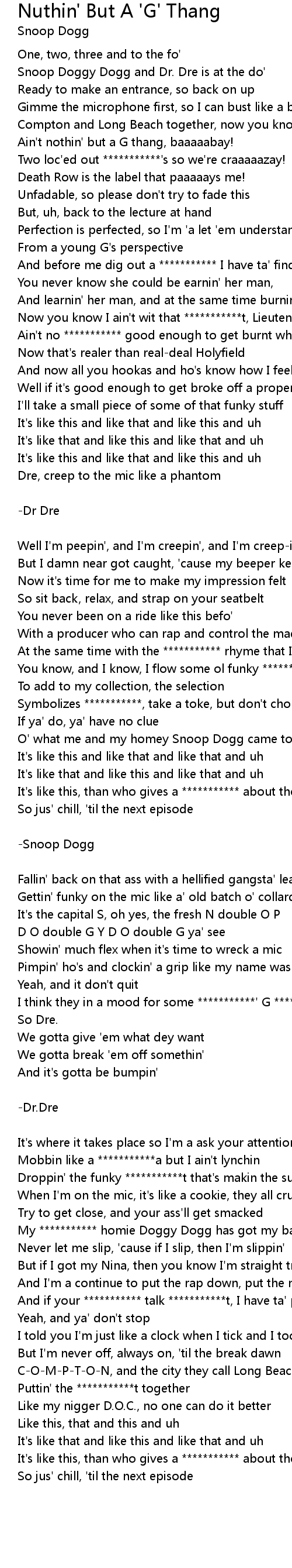 Ain't nothin' but a G thang, baaaaabay! |