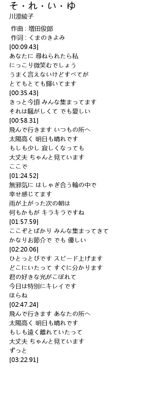 | [00:58.68] | 飛んで行きます いつもの所へ |