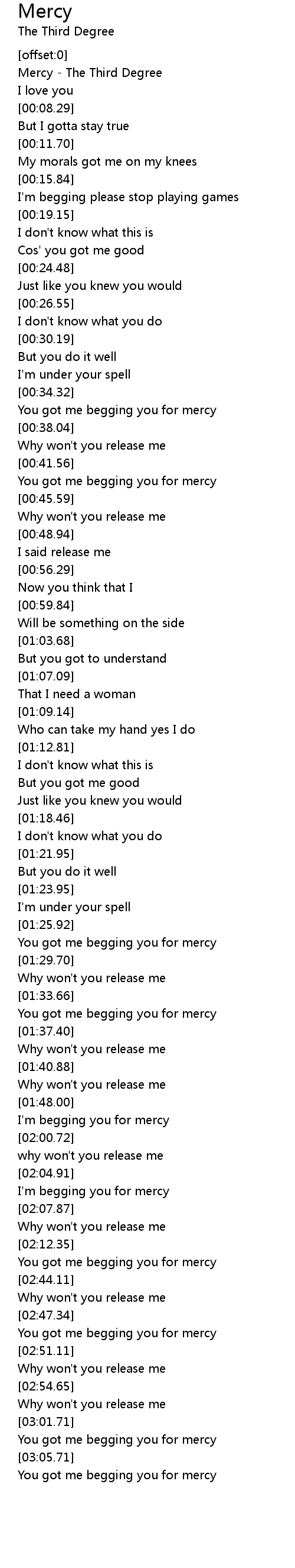 You got me begging you for mercy |
