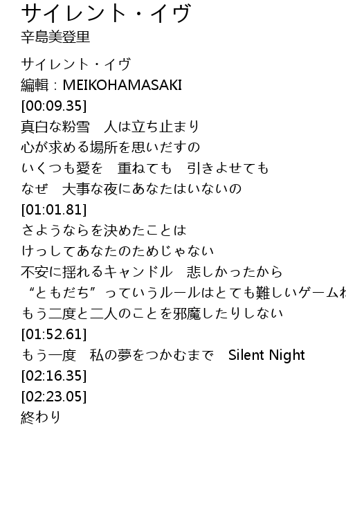 | [02:03.72] | もう一度 私の夢をつかむまで Silent Night |