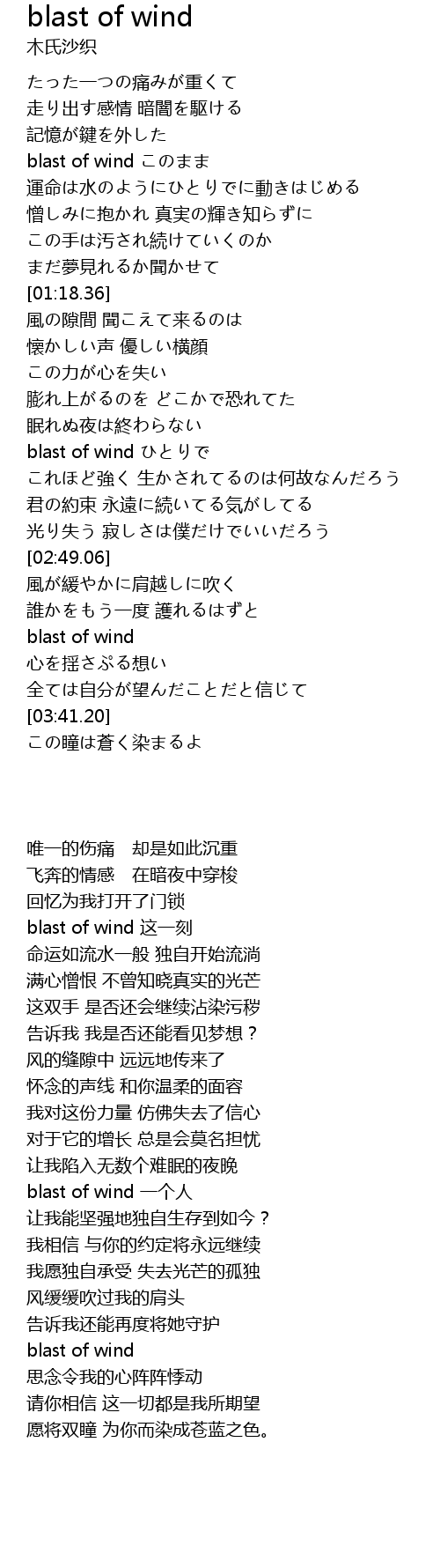 | [01:29.37] | 風の隙間 聞こえて来るのは |