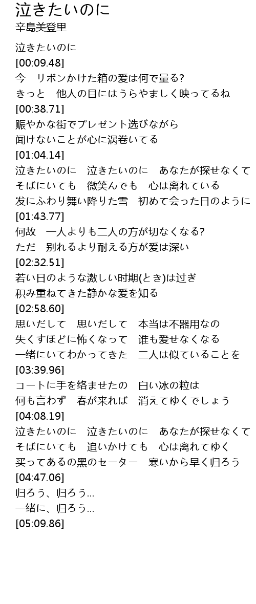 | [04:09.34] | 泣きたいのに 泣きたいのに あなたが探せなくて |